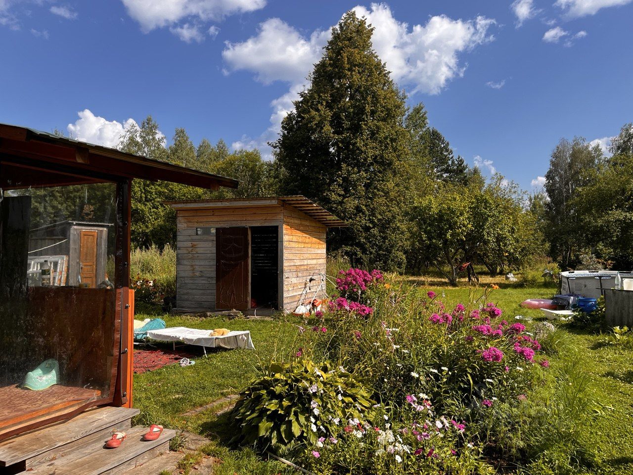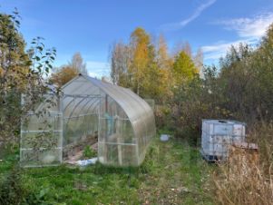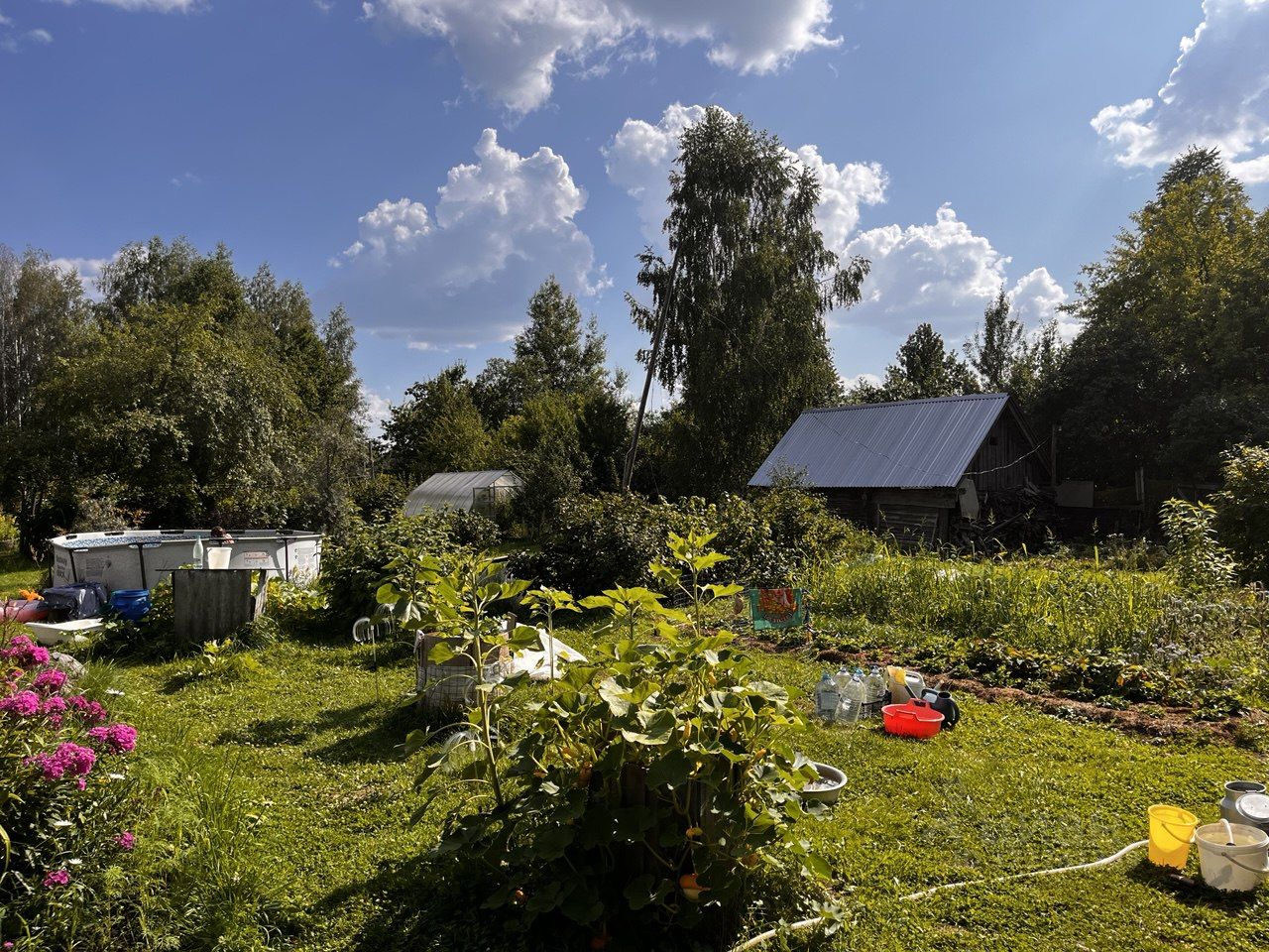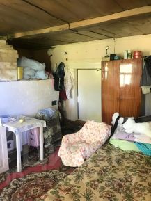 Дом-сруб, обшит, утеплн.По периметру ( кроме фасада) пристроены летняя кухня, спальня, коридор. Есть новая просторная терасса с мягкими окнамии. Так же построены новый сарай, туалет, отремонтирована баня и маленький домик. Есть слив. в кухне стоит раковина. Вода вкусная, е много,. скважина-14 метров. Участок ухоженый, с высокими грядками, теплицей. Плодоносят смородина, крыжовник, облепиха, жимолость, малина, вишня, груша, яблони. По факту земли намного больше, чем в документах, так как нет соседей. В лесу много грибов и ягод.