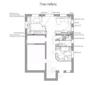 1 этаж: кухня гостиная - 39,4 кв.м; комната - 11 кв.м; санузел-5,6 кв.м, котельная - 6,4 кв.м., гараж - 22,7 кв.м., коридор.
