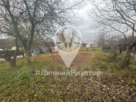 Участок ровный, правильной формы с плодовыми деревьями и хоз. постройками.
