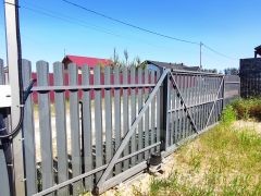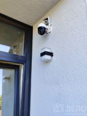 Тротуарные дорожки - монолитный гранит, от калитки до крыльца, крыльцо и терраса. Забор - декоративный штакетник и цветной сланец. Ворота - автоматические откатные с пультом. Калитка - ширина 1 метр. Видеонаблюдение - поворотные WIFI камеры с двух фасадов дома, с микрофоном и динамиком.