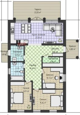 Сам дом построен из керамического блока - 2,1 нф. Облицован баварской кладкой. Толщина стен 55 см. Крыша - металлочерепица. Окна - rеhаu. Ленточный фундамент глубиной 1,3 м.