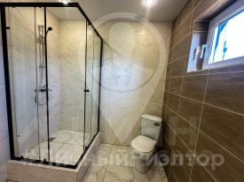 В доме уже полностью оборудована ванная комната и также установлен кухонный гарнитур.
