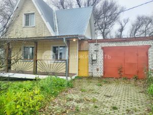 Материал дома- брус, установлен на металлических сваях, участок с уклоном, есть кирпичный гараж. Участок полностью огорожен.
