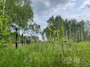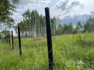 В окружении большое количество деревьев. По периметру установлены металлические столбы - основа для забора.