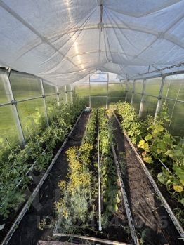 Территория огорожена забором, есть плодовые деревья, кустарники, клубника, земляника. чуть больше года назад поставили теплицу 3х6 м.