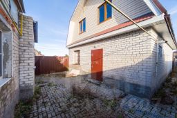 - Новый двухэтажный дом, так же построен из кирпича. Ориентировочная площадь 100 кв.м. В нем расположены 3 комнаты и кухня-гостинная. Одна комната с ремонтом. Заведено электричество -сделана разводка электричества, заведен газ- установлен двухконтурный котел, разведена система отопления. Водоснабжение так же заведено и сделан вывод канализации.