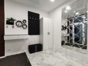 На 1 этаже - шикарная кухня-гостиная, большой холл, гардеробная и ванная комната с санузлом. Имеется просторная терраска-прихожая с панорамными окнами, из которых открывается чудесный вид на участок.