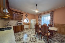 Общая площадь: 350 кв. м. Жилая площадь: 230 кв. м. Площадь кухни: 110 кв. м. Площадь участка: 7,5 соток.
