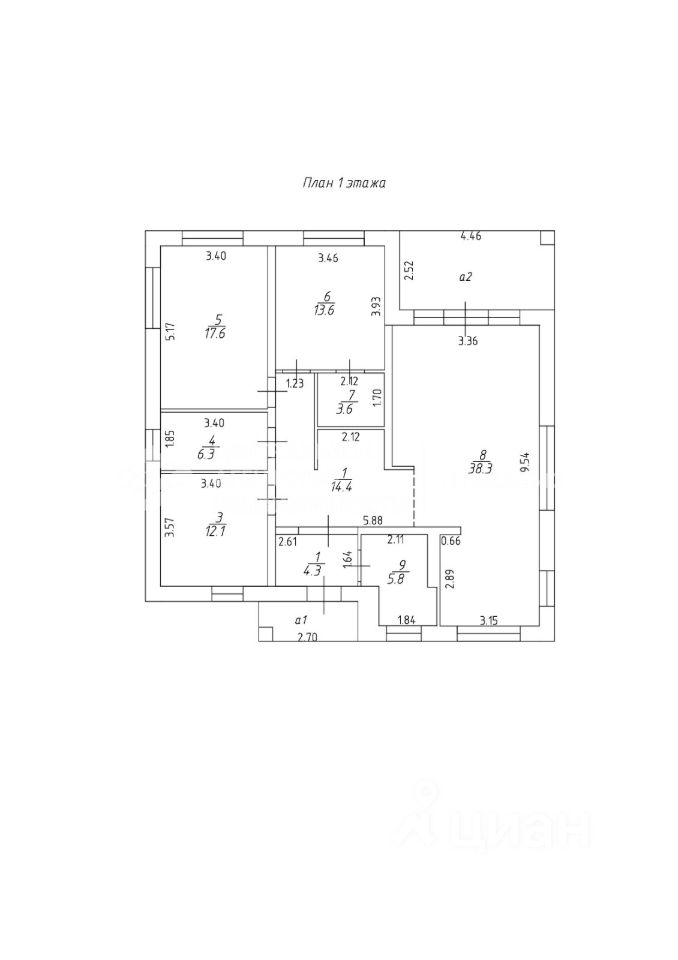 Общая площадь 107 кв.м. Большая кухня-гостиная 38,3 кв.м + 3 спальни (17,6+13,6+12,1 кв.м.), 2 санузла.