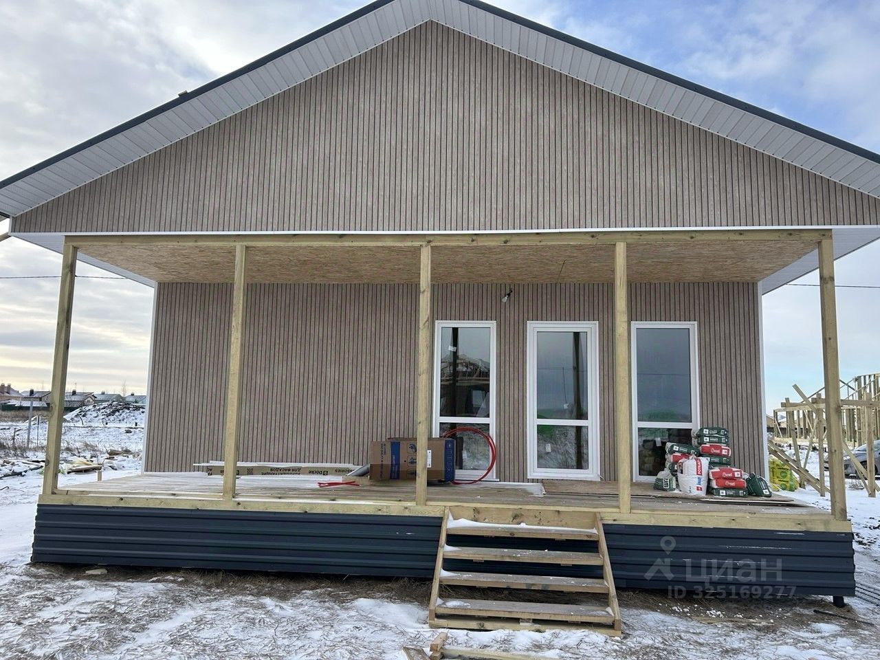 Внешняя отделка Сайдинг планкен, внутренняя отделка гипсокартон, шпаклевка стен с подготовкой для финишного покрытия.
