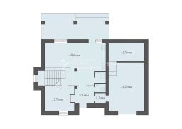 - 1 этаж: кухня-гостиная с выходом на террасу, санузел, кабинет, хозяйственное помещение, просторная прихожая.