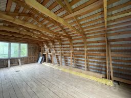 В доме на первом этаже предусматривались - кухня, совмещенный санузел, большая комната (при желании можно разделить). Второй этаж - пространная мансарда, позволяет планировать пространство исходя из своей фантазии и желаний. Пол первого этажа и перекрытие между первым и вторым этажом утеплены Роквул 150 (150х600х1000). Крыша покрыта металлопрофилем.