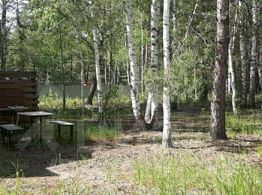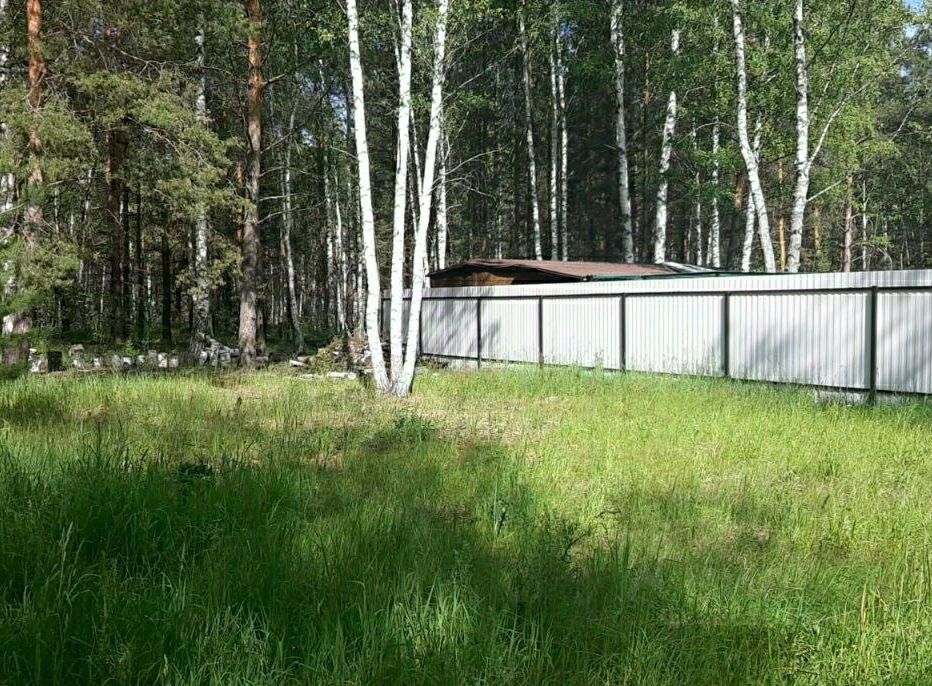 Ровный, ухоженный, половина засеяна газонной травой. Огорожен забором. Крайний, за участком сразу лес.