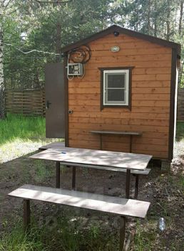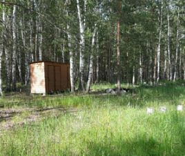 Построен каркасно-щитовой домик 6 * 3, утеплен. Есть хозяйственный блок с уличным туалетом.