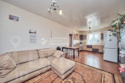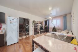 На первом этаже - спальня, просторная кухня-гостиная, сан.узел, техническое помещение. На втором этаже две спальни, сан.узел, гардеробная, просторная лоджия на два окна. Частично меблирован.