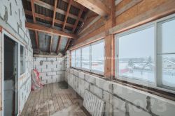 Этот двухэтажный дом общей площадью 133,5 кв. м построен в 2013 году из пеноблоков. Дом полностью пригоден для круглогодичного проживания, подключено центральное водоснабжение, есть электричество, газ и канализация. Отопление осуществляется с помощью индивидуального котла.