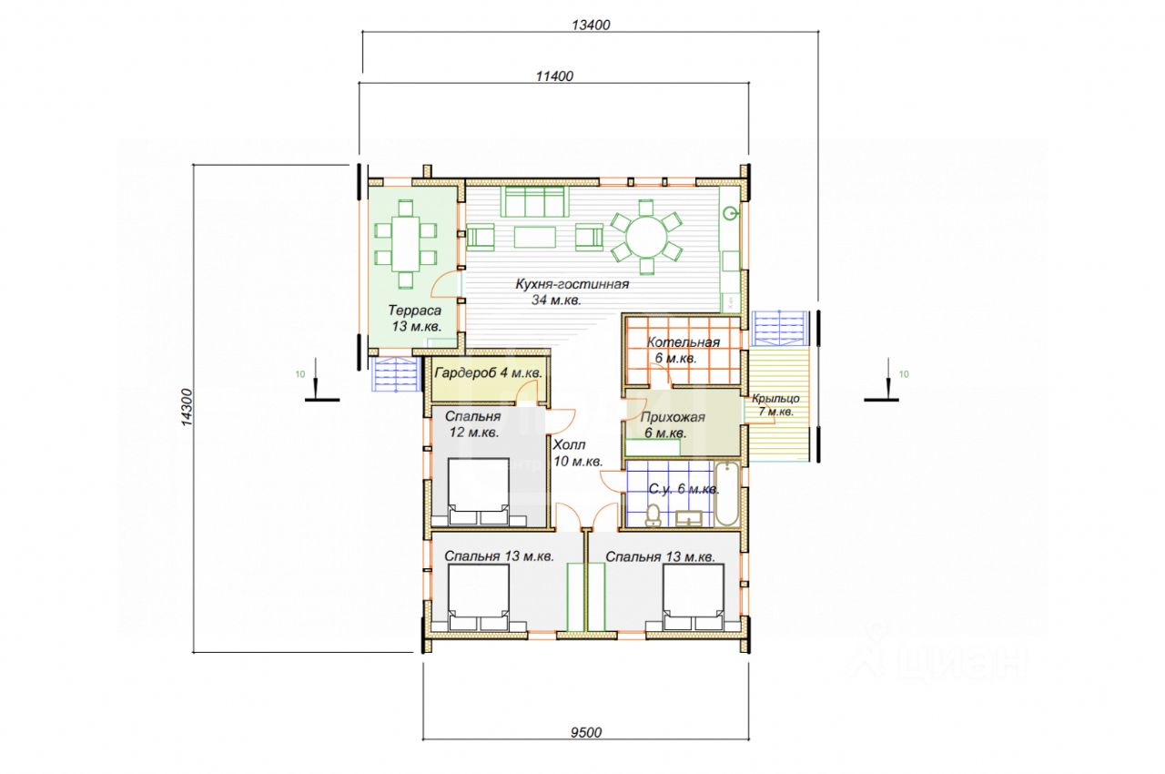 Пол и кровля утеплены (200 мм), внутренняя отделка выполнена из качественных материалов.
