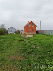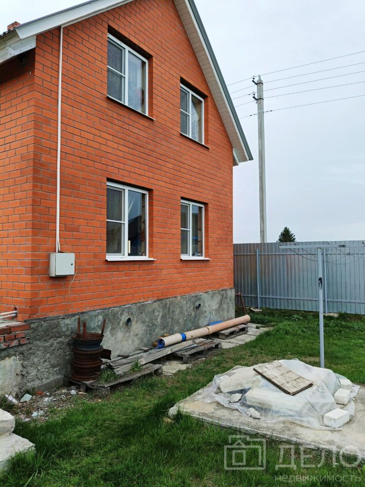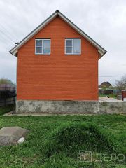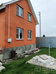 Дом построен из пеноблоков, отделка - красный кирпич. Внутри полностью утеплен и обшит гипсокартоном. В цоколе расположен подвал. На участке две канализационные ямы. Газ проходит в метре от участка. В доме печное отопление.