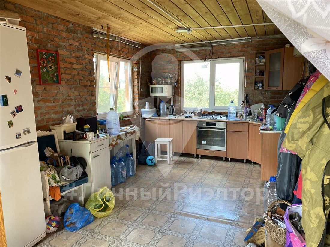 1-й этаж: пристройка кухня + прихожая, просторная гостиная, две спальни в одной действующая печь-камин, холл-кухня. Из мебели остаются два кухонных гарнитура, 2 холодильника, шкафы и кровати.