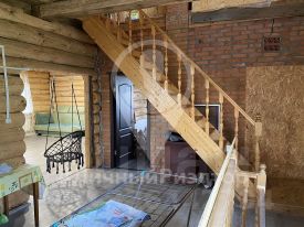 Дом 158 м2, 2-х этажный: сруб из бревна 10х10м + отапливаемая пристройка из кирпича 10х5 м, снаружи стены обложены кирпичом, кровля-металлочерепица, окна - ПВХ, высота потолков - 3,2 м, полы -ламинат на втором этаже в холле уложен неполностью, в пристройке пол линолеум.