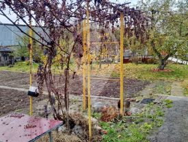 На даче растут различные плодовые деревья и кустарники, виноград, розы.
