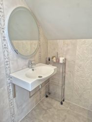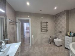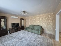 Площадь первого этажа 80 кв.м., - здесь уютная кухня 14 кв.м. , гостиная 18 кв.м, просторный санузел и спальня - 17 кв.м.. На втором этаже - большая зона отдыха, спальня и санузел. Очень качественный новый ремонт, в спокойной светлой цветовой гамме. Здесь очень уютно, светло и комфортно, позитивная энергетика! Теплые полы в ванной, кондиционеры, утепленный подвал. У дома высокий цоколь, что создает уверенность и комфорт в зимних условиях.