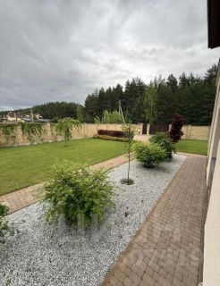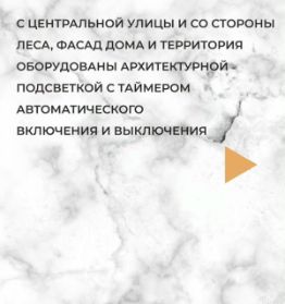 - территория дома полностью благоустроена, уложен рулонный газон с системой автополива, тротуарная плитка, многолетние декоративные зеленые насаждения от центра Сакура (в Полянах), зона отдыха с барбекю, спортивная площадка, гараж на две машины, въезд на участок с двух сторон с центральной улицы и со стороны леса, фасад дома и территория оборудованы архитектурной подсветкой с таймером автоматического включения и выключения.