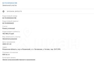 Участок, правильной формы, ровный, окашивается, круглогодичный подъезд, дороги с двух сторон, сезонное водоснабжение, оплачено техническое разрешение газификации, площадь 6.5 с возможностью официального увеличения площади, через земельный департамент, на две сотки. Линия электропередач, по границе. Кадастровый 62:15:0050422:98