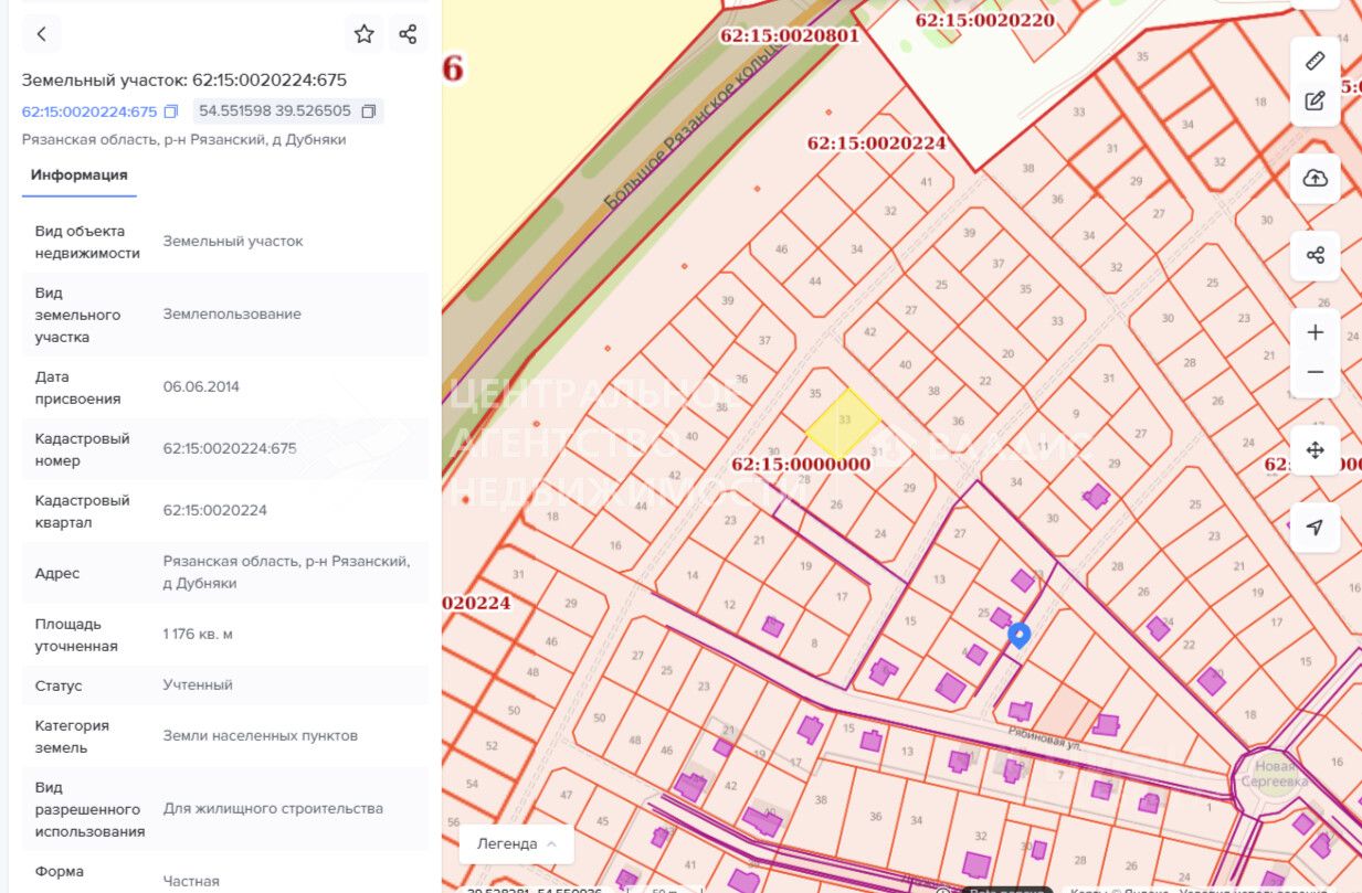 Межевание проведено. Кадастровый номер 62:15:0020224:675