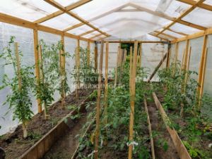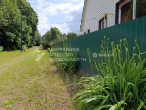 Участок ровный, правильной формы, огорожен забором из профлиста и сетки со всех сторон. С лицевой стороны забора ворота и внутри участка парковка. Около дома беседка, хозблок и большая теплица.