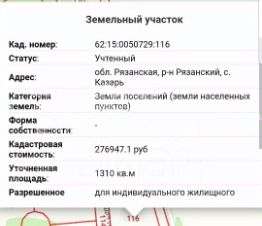Продаю земельный участок в с.Казарь (30 км. от г.Рязань).