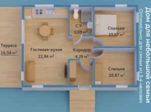 Кухня-гостиная, 2 спальни, прихожая, 1 с/у. Терраса открытая.