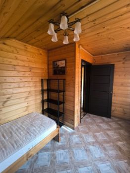 Внутри дом полностью отделан имитацией бруса из сосны, толщиной12мм. Ванная и терраса отделка имитацией бруса из лиственницы. Пластиковые окна. Газовый котел двухконтурный Protherm, газовая плита Bosch с газовой духовкой и электрическим грилем, холодильник Атлант большой.