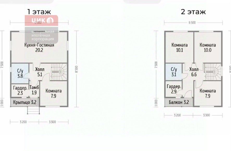 На втором этаже : 3 комнаты ( 10+10+7,9) кв.м, гардеробная, санузел., балкон.