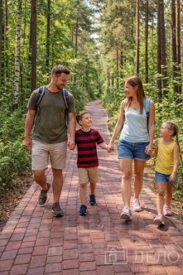 Готовая инфраструктура: магазин, детские и спорт-площадки, зоны отдыха, пешие тропы