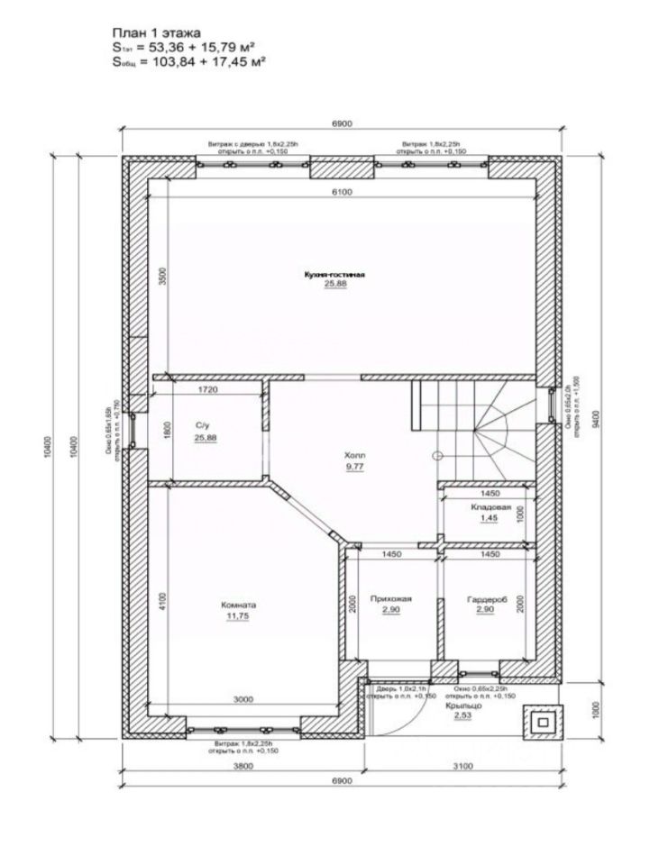 2 холла, подсобное помещение, гардеробная, балкон