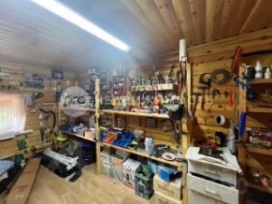 Стены бревенчатые, крыша металлочерепица.