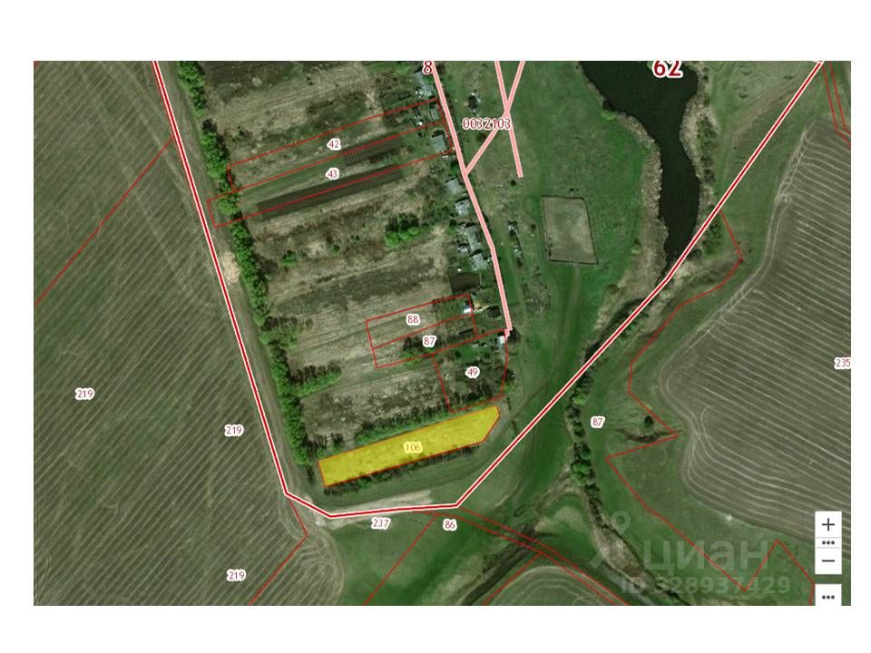 Почва-чернозем. Рельеф ровный. С трех сторон участка лесопосадки. Соседи только с одной стороны, за лесополосой. С участка хороший вид на долину речки. До пруда с купанием 200м.