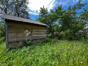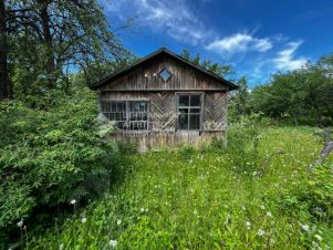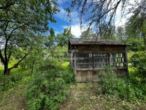 На участке находится маленький дачный домик, прекрасно выполнит роль места временного размещения либо бытовки.