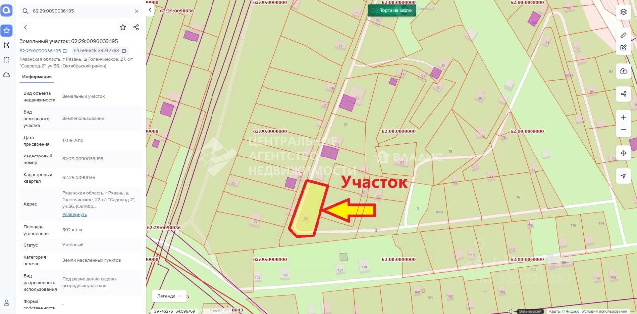 Участок прямоугольной формы, площадь участка 6 соток, межевание проведено.