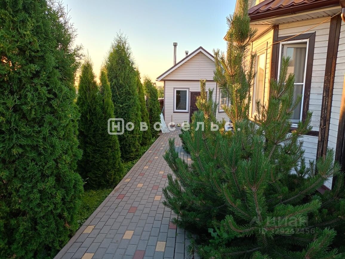 На ухоженной территории дома есть ландшафтный дизайн,теплица,плодовые деревья,кустарники.