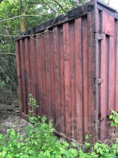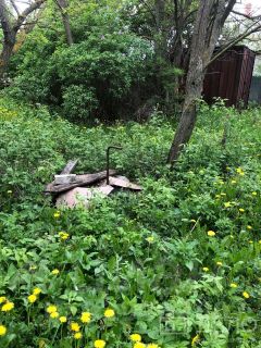 На участке есть плодовые деревья, и металлический гараж (для инструмента и инвентаря).