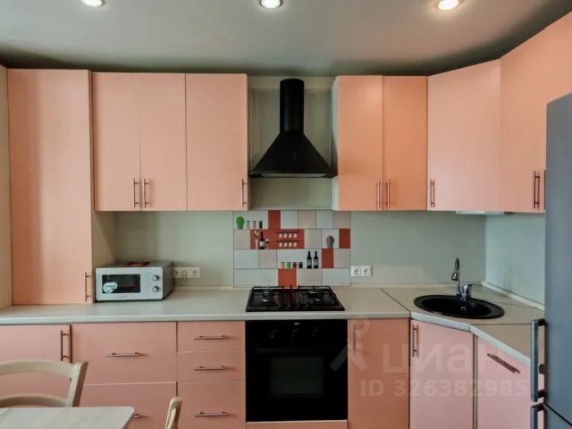 - Кухня: кухонный гарнитур, стол с двумя стульями, полный набор посуды, сковородка, кастрюля, холодильник, газовая плита с автоподжигом, электрический чайник, сушилка для белья. Выход на балкон.