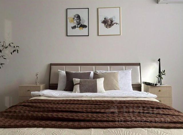 Спальня: кровать ,кондиционер , глянцевый шкаф-купэ, smart-телевизор, натяжной потолок с