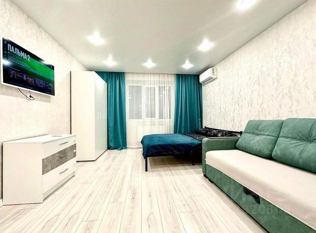 Зал: кондиционер, диван двухместый + диван двуместный, несколько комплектов постельного белья и полотенец, натяжной потолок с неоновой подсветкой.