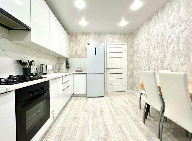 Кухня: полный набор посуды, кухонный гарнитур, новый двух камерный холодильник BOSCH, газовая плита BOSCH, духовой шкаф BOSCH, микроволновая печь, электрический чайник,