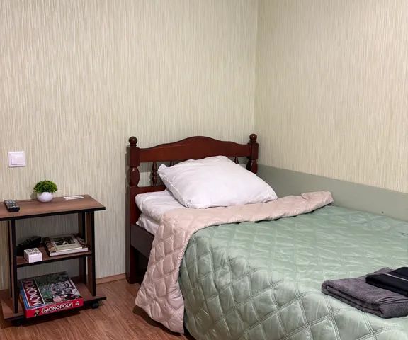 В сосновом лесу Солотчи, рядом с санаторием "Сосновый бор". Бесконтактное заселение и поддержка 24/7. Скидка от 10 % при бронировании от 3 суток. Пишите в чат! Квартира с балконом в лесу в 20 минутах езды от Рязани. Наша квартира предназначена для спокойного, размеренного и душевного отдыха. Квартира в доме расположена в отдалении от шумных дорог, поэтому здесь никогда не бывает посторонних людей и автомобилей. Тишина и спокойствие — один из главных плюсов отдыха в нашем месте. Здесь вы сможете забыть о своих проблемах и окунуться в тишину леса с многолетними высокими соснами. — Квартира рассчитана на 2 взрослых человека (дети — бесплатно). К нам можно с воспитанными питомцами небольших размеров. — При бронировании просьба указывать точное количество гостей, чтобы мы подготовили спальные места, постельное бельё и полотенца. — Дистанционное заселение и выезд для вашего удобства. Пароль от сейфа с ключом вы получите в день заселения. — Заезд с 13:00, выезд до 11:00. (Можно по договоренности) В квартире очень тепло, она оснащена всем необходимым для комфортного отдыха. В вашем распоряжении: — холодильник; — СВЧ-печь; — чайник; — посуда и кухонные принадлежности, бокалы, кастрюля, сковорода и т. д.; — чай, кофе, сахар Спальня-гостиная: — кровать 100/200; — телевизор; — настольные игры (монополия, домино, седьмое чувство), книги — стол и два стула. Душевая комната: — туалет; — раковина; — душевая кабина; — полотенца на каждого гостя; — шампунь, гель для душа, мыло. На территории: — открытая общественная парковка; — детская площадка. Летнее время: — Лысая гора (10 мин.); — родник с чистейшей водой (10 мин.); — река Старица, пляж (10 мин.); — "В некотором царстве" (25 мин.); — биатлонный комплекс "Алмаз" (20 мин.); — "Рыбацкая деревня" (25 мин.); — аквапарк "Окская жемчужина" (25 мин.). Вы можете приобрести у нас сертификат на проживание в подарок родственникам или друзьям. Эмоции и воспоминания — беспроигрышный подарок в наше время! 5 главных правил: 1. Помыть за собой используемую посуду. 2. Собрать весь мусор и выбросить в мусорный контейнер на выезде из комплекса. 3. Выключить освещение. 4. Предупредить о выезде. Не подходит для шумных компаний и вечеринок. После 22:00 просим соблюдать режим тишины, никакой громкой музыки и шумных мероприятий. В доме запрещено курить сигареты, кальяны и другие табачные изделия. Запрещено ходить в уличной обуви по квартире. — Больше ничего не мешает поездке — нажимайте "Забронировать", мы ждём вас!