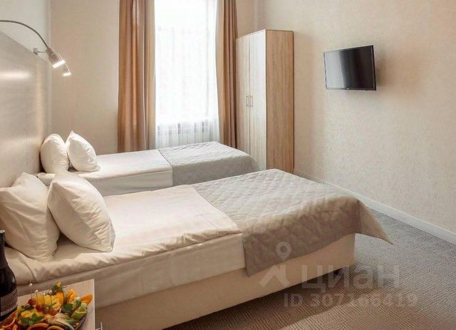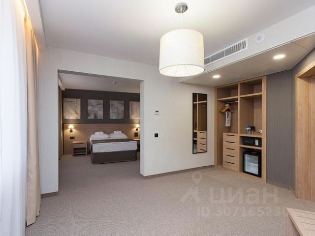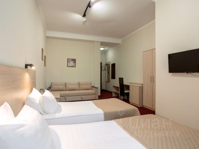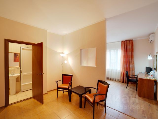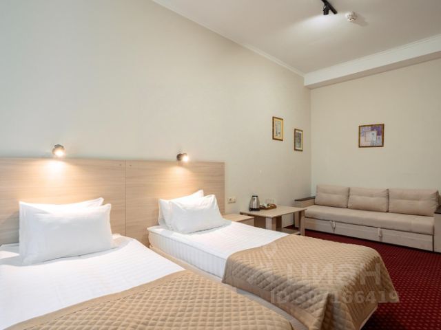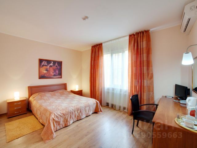Комплектация номера: телевизор, DVD плеер, холодильник, кондиционер (сплит система), сплит система, душевая кабина, санузел, WiFi, чайник и набор для чаепития, банные принадлежности, тапочки, двуспальная кровать с прикроватными тумбочками и бра, большой письменный стол, журнальный столик, шкаф-купе, сейф, стулья с подлокотниками, торшер.