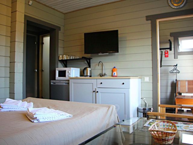 Сынтульская слобода гостевой комплекс, построенный не так давно. Мы работаем с мая 2016 года, а это гарантия свежести и современности пансионата. Для размещения предлагаем бревенчатые гостевые дома разных категорий и вместительности. Объединяет наши коттеджи безупречная эргономичность, помноженная на безусловный домашний уют и высокий уровень сервиса. Мы предлагаем гостиницу в Касимове на совершенно ином уровне это эко отель у озера, оборудованные всем необходимым для проживания. Размещение идеально подойдет семьям или подрядным организациям, группам киносъемки, для заселения на короткое и длительное время. Наша гостиница находится в 8 км от центра города Касимова на берегу озера и рядом с сосновым лесом. Номера хорошо укомплектованы всем необходимым для длительного комфортного проживания: холодильник; микроволновка и электрочайник; в санузле душевая кабина, раковина, унитаз косметические и гигиенические принадлежности; кровать двуспальная или односпальные; тумбочка, табуреты; LED телевизор и бесплатный Wi-Fi; зеркало, вешалка, фен и д.р. У входа расположена веранда, где в теплое время года можно пообедать или поужинать на свежем воздухе, а утром вкусить ароматный горячий кофе, завернувшись в плед. Уютный и уединенный коттедж с размером 30 м2 имеет: - спальню: 1 большая двуспальная кровать, тумбочки, косметический столик с зеркалом, пуфик, шкаф; - гостиную, совмещенную с кухней: обеденный стол, стулья, газовая плита, вытяжка, раковина, электрический чайник, СВЧ, часы, холодильник, ТВ, набор посуды; - туалетную комнату: унитаз, раковина, зеркало, фен, косметические и гигиенические принадлежности (мыло, шампунь, гель для душа, зубная паста, зубные щетки, бритвенный станок, шапочка для душа), индивидуальные тапочки и халаты, полотенца (для лица, тела, ног); - прихожую: вешалка, тумба для обуви. Во всем коттедже теплые полы. Имеется просторная терраса. Рядом с коттеджем находится мангал, столик и лавочки.