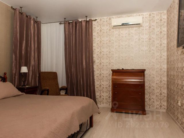 Спальня: кровать ,кондиционер , глянцевый шкаф-купэ, smart-телевизор, натяжной потолок с